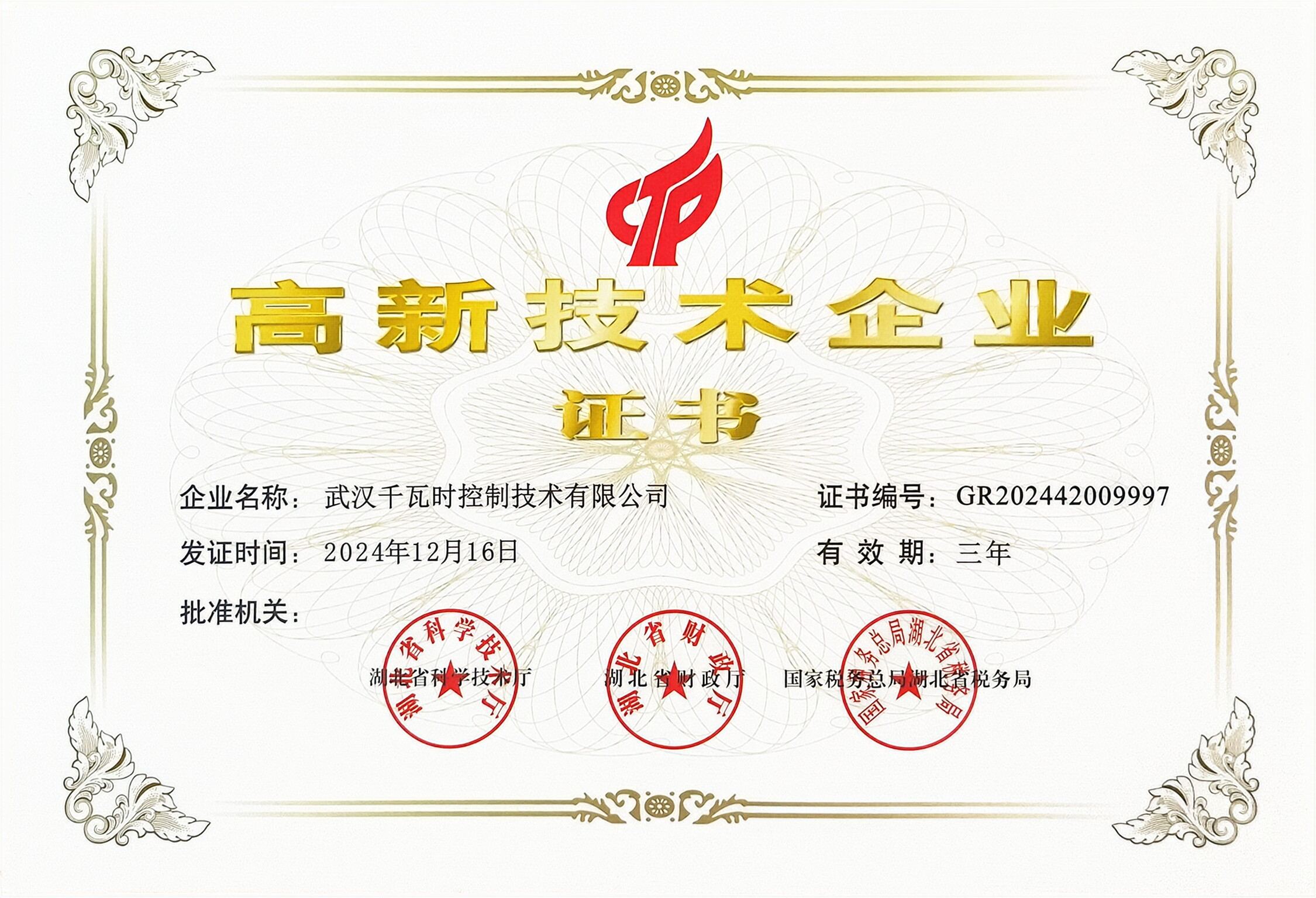 武汉千瓦时控制技术有限公司通过国家高新技术企业认定